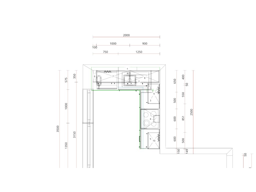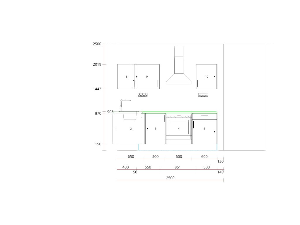 pracovní deska, sokl, výkryt ke stěně