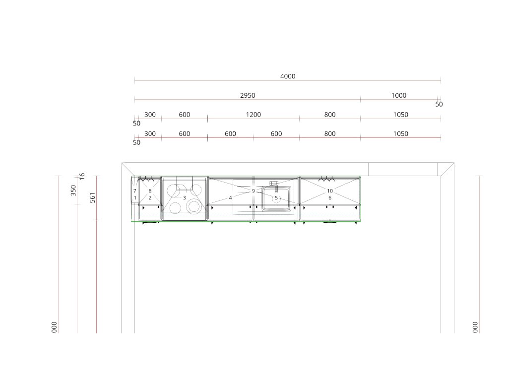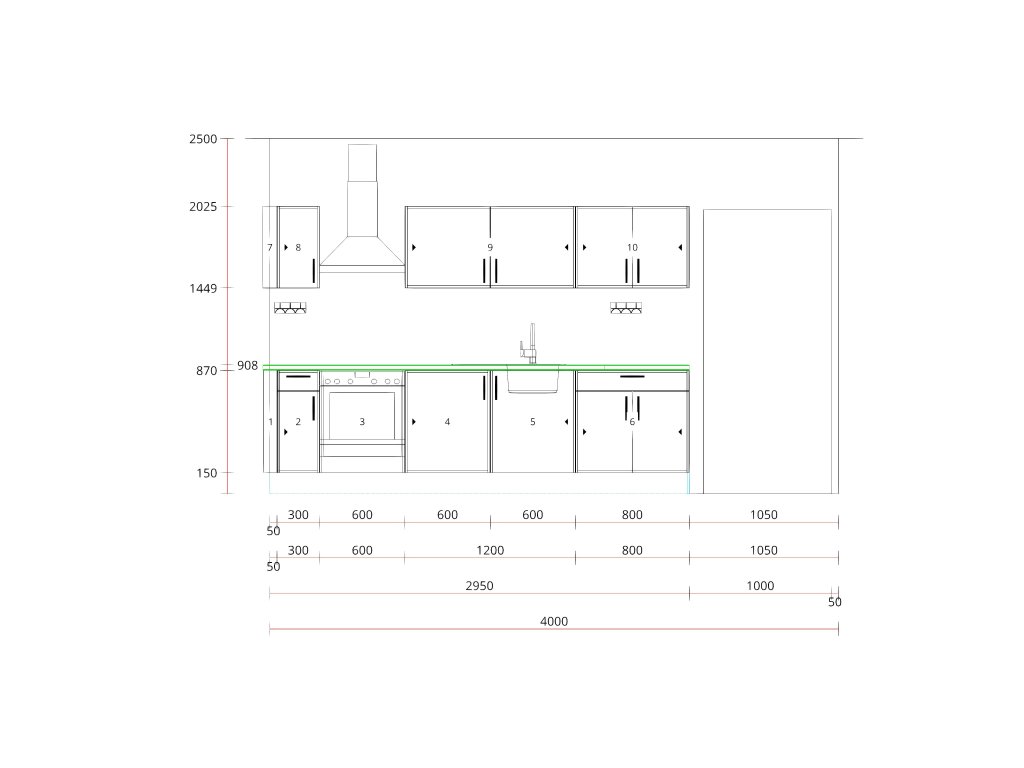 pracovní deska, sokl, výkryt ke stěně