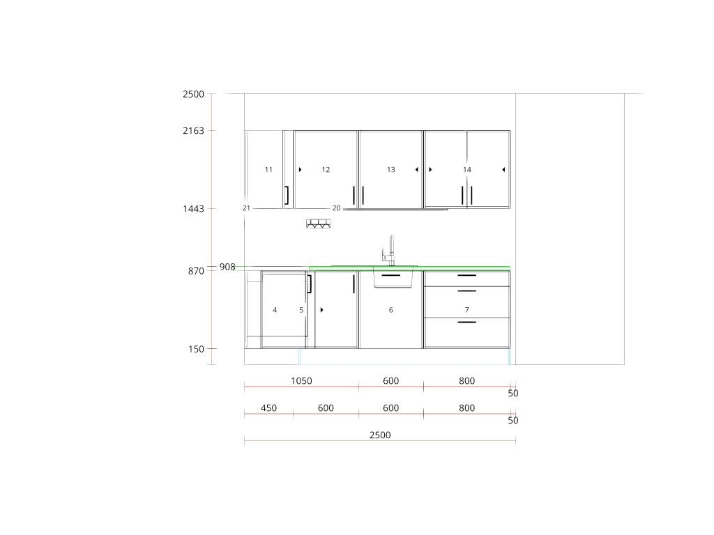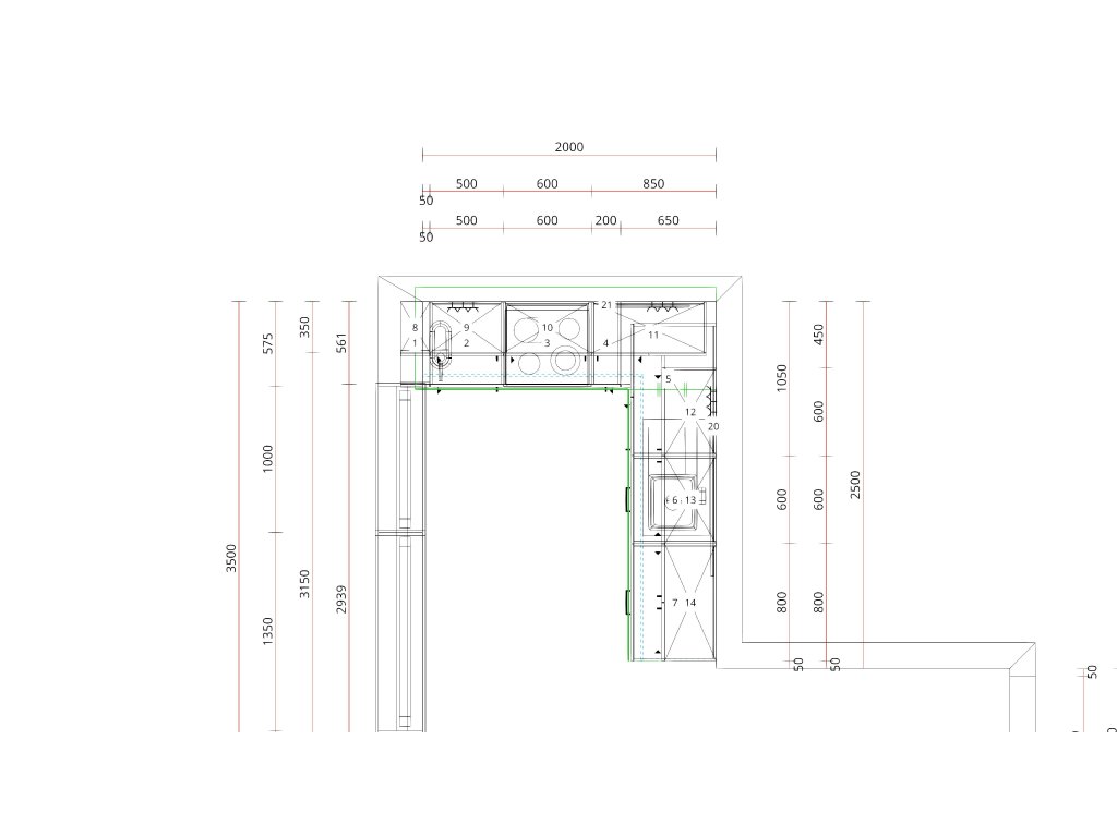 pracovní desky, sokly, výkryty ke stěně